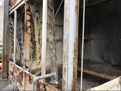 根據(jù)上圖的結(jié)構(gòu)我們還知道,閉式冷卻塔盤管的四周是被鍍鋁鋅板外殼所包圍著的,所以我們?cè)诓鹆耸账骱?,還需要將外殼也拆除了。