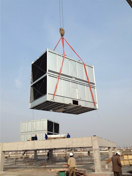 惠州東江環(huán)保橫流方形冷卻塔安裝 廣東特菱空調(diào)(http://www.paikemoxun.com)方形橫流式玻璃鋼冷卻塔結(jié)構(gòu)特點: (1)擋板:玻璃鋼材質(zhì),表面光滑美觀,耐腐蝕,防老化。 (2)填料:改性聚氯