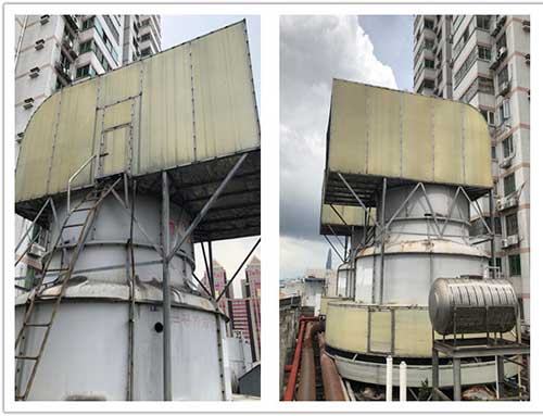 鴻翔花園位于深圳老城區(qū)之一的羅湖蔡屋圍區(qū)松園路。由于冷卻塔使用壽命長,冷卻塔填料老化,需要更換冷卻塔填料。接下來,根據(jù)鴻詳花園圓形冷卻塔填料的更換,介紹了拆卸和更換圓形冷卻塔填料的正確過程。 在清除